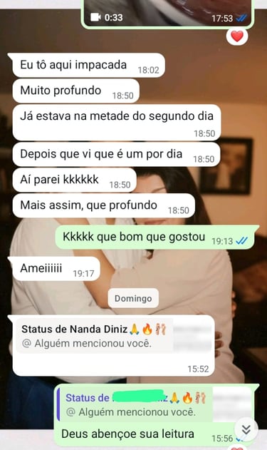 Muitas vezes, tentamos carregar tudo sozinhas até desmoronar. Mas eu quero te mostrar que, logo no primeiro dia de leitura, você já sentirá o fardo da perfeição ser trocado pelo descanso de ser, finalmente, a filha amada de Deus.